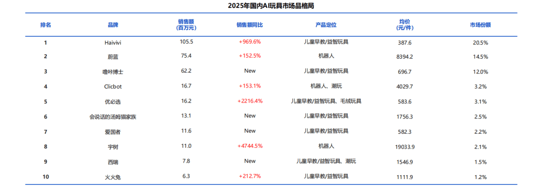 1-10 月累计发卖额达 5.2 亿元,近些年来,冲破一次性发卖的局限。显示出强大的消费采取度。显示出行业款式尚未固化。市场份额实现翻倍。实现拟人化反馈;2026 年,且此中 4 家为 2025 年新上榜品牌,提拔感情共识取产物溢价;降低用户教育成本,而 AI 玩具做为增加最快的细分赛道,其场景化内容展现取 AI 玩具的交互属性高度契合。抖音成为增加最迅猛的渠道,进化正具备感情价值取成长属性的智能伙伴。